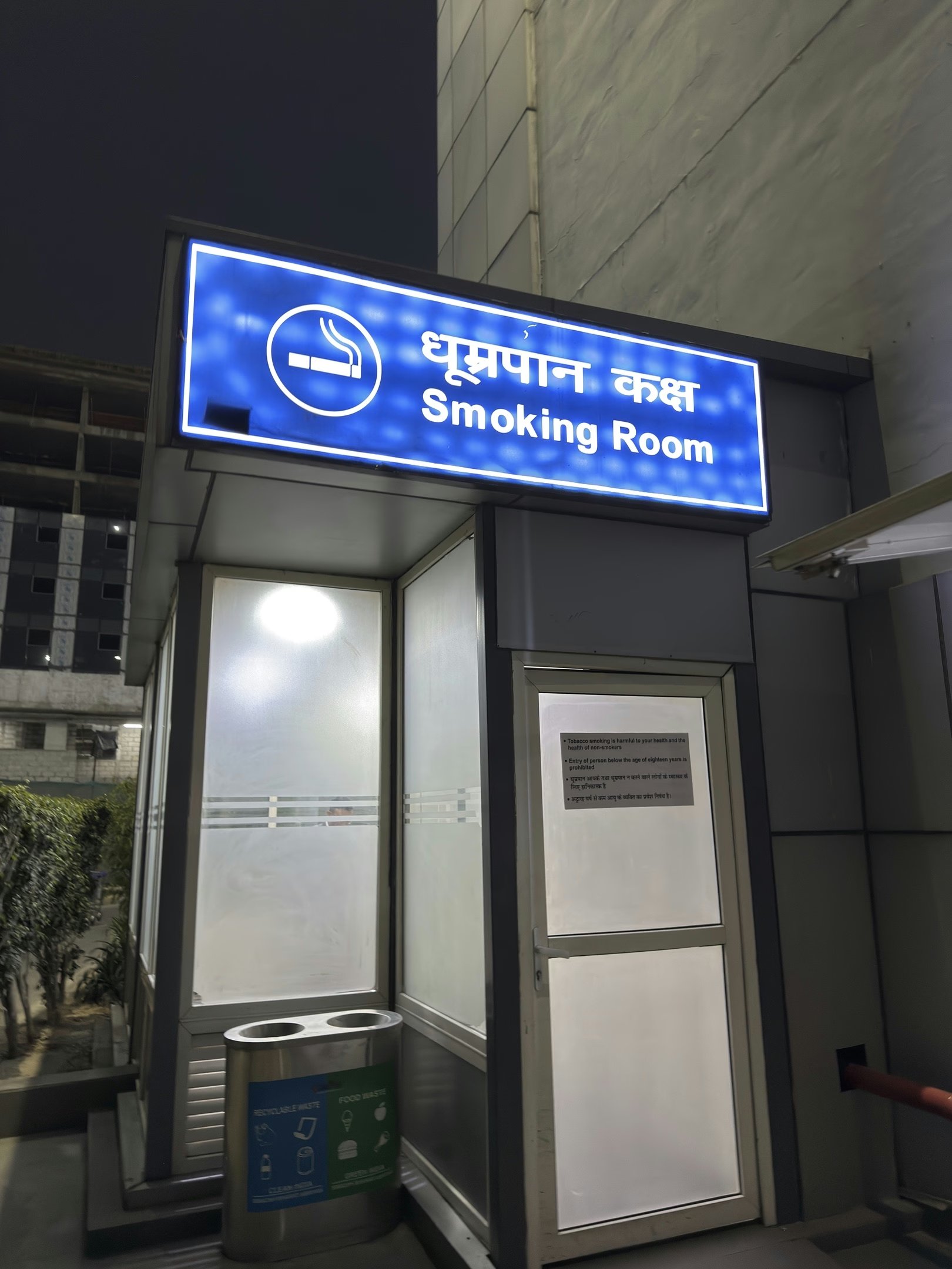 Keep in mind that you cannot walk between terminals airside at Delhi Airport. Terminal 1 and Terminal 3 are connected by a free shuttle bus, but Terminal 2 requires separate access. Plan your smoking break around your departure terminal. Smoking outside designated areas carries a ₹200 fine under COTPA.